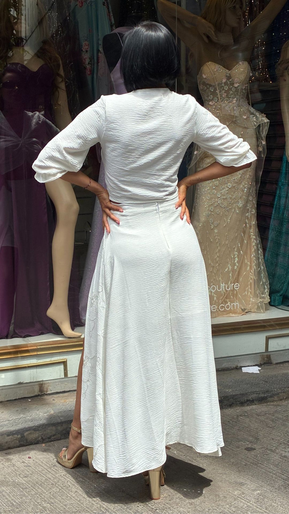 • Posee una abertura lateral alta en una pierna, que le da un aire sensual y sofisticado.
